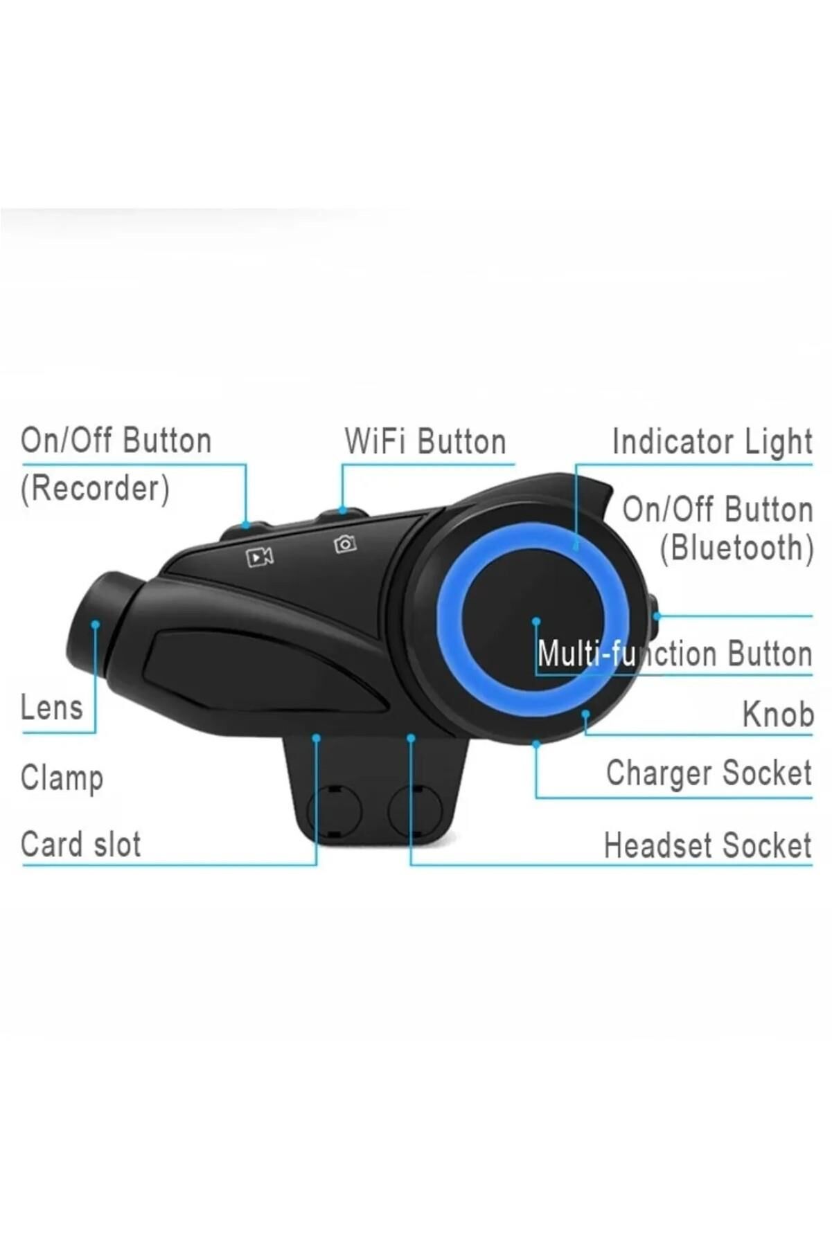 1000 Mt 2K Kameralı Wifi Intrcom FM Radyolu Anti Titreşim Kask Kulaklık Su Geçirmez 6 Eş Profesyonel