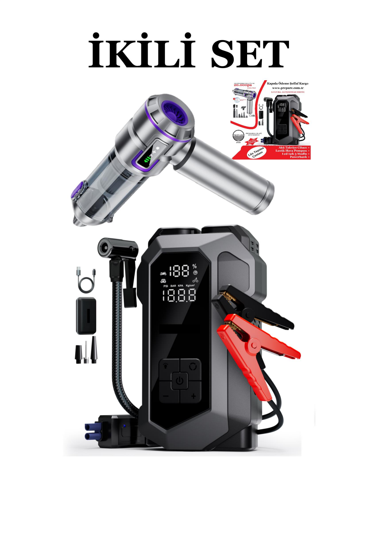 16.000mAh Akü Takviye Cihazı ve Araç İçi Süpürge İkili Set