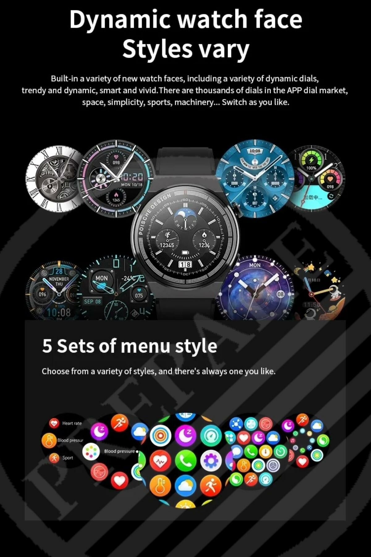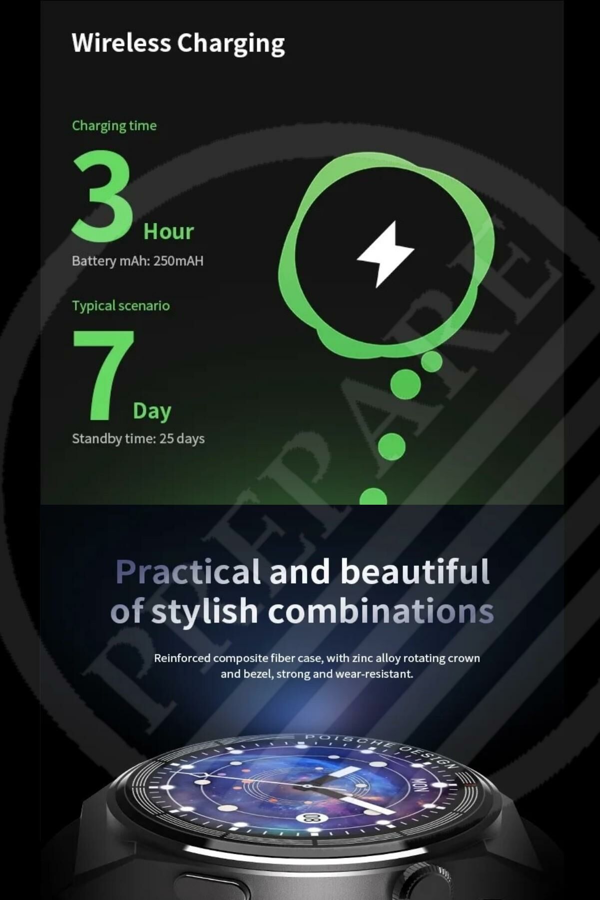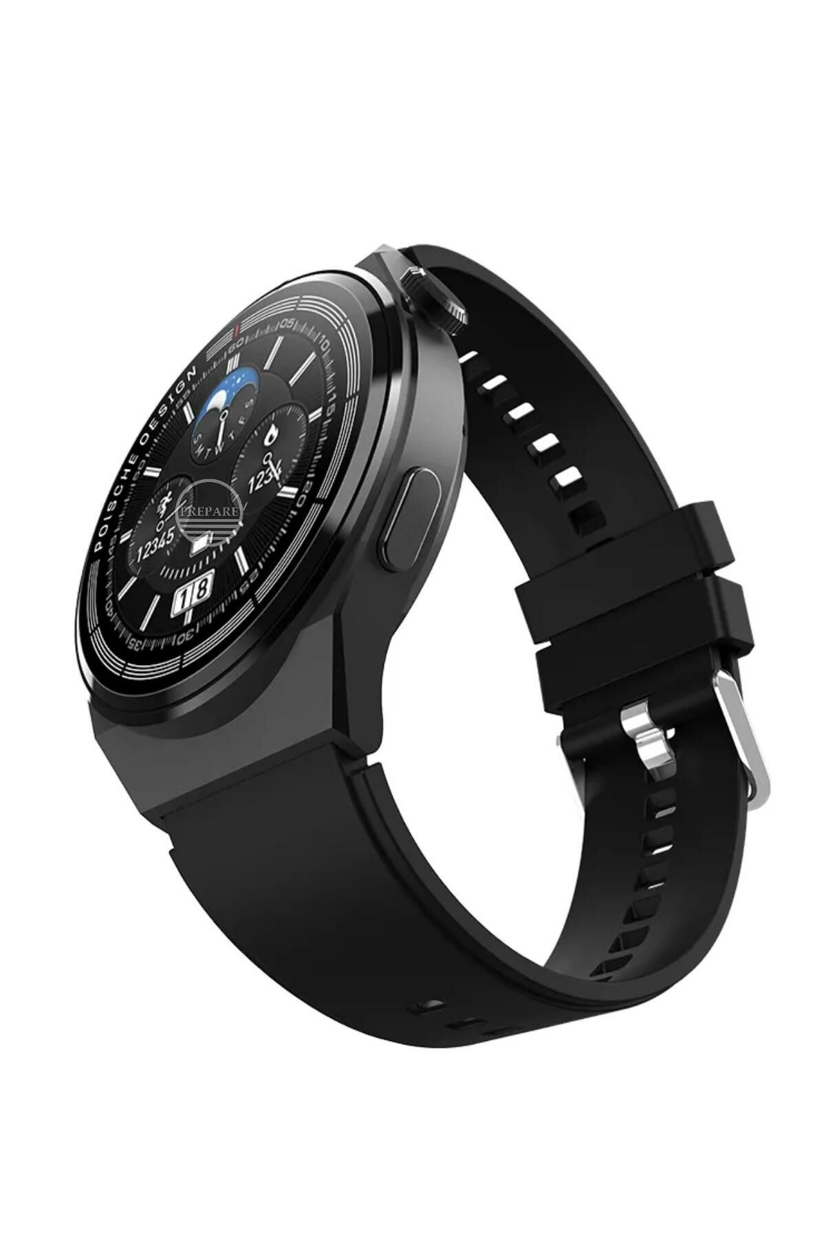 PREPARE 3GT MAX Smart Watch 1.45 inç P Design Siri Nfc Bluetooth Antrasit Siyah Akıllı Saat 3x Kordon