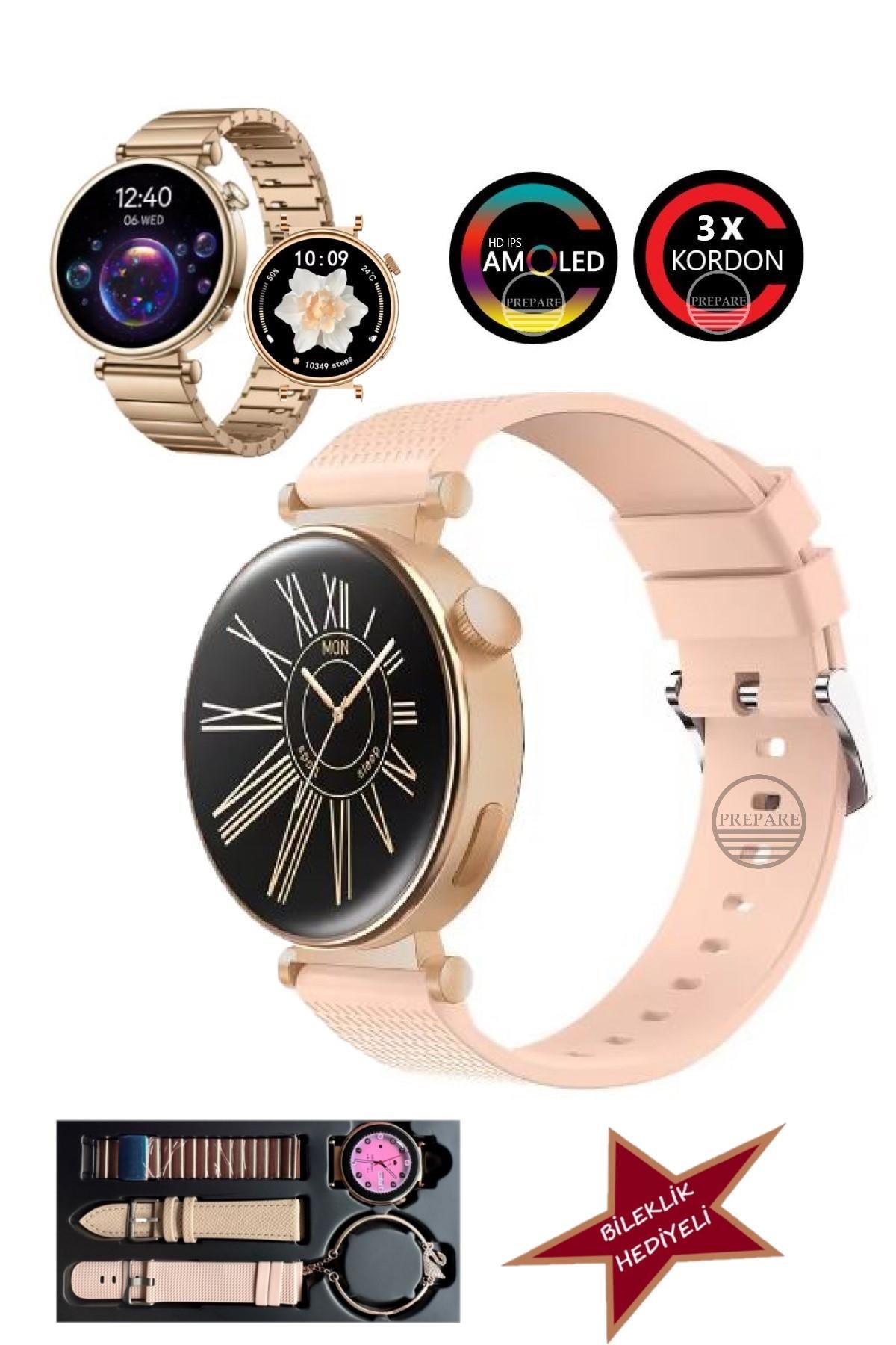 Akıllı Saat Amoled Ekran 1.32 inç Çelik Deri Silikon 3 Kordon Nfc Bildirimler ve Stres Ölçümü