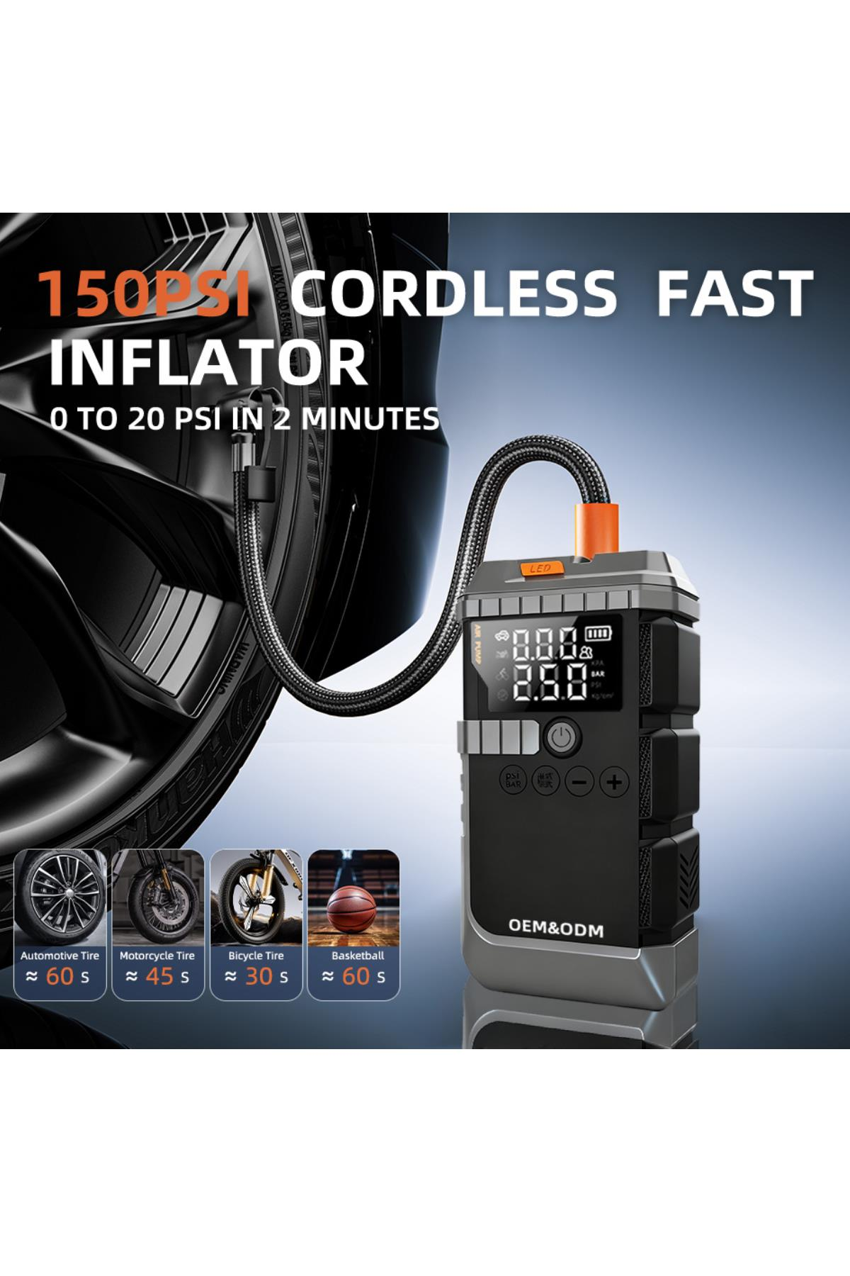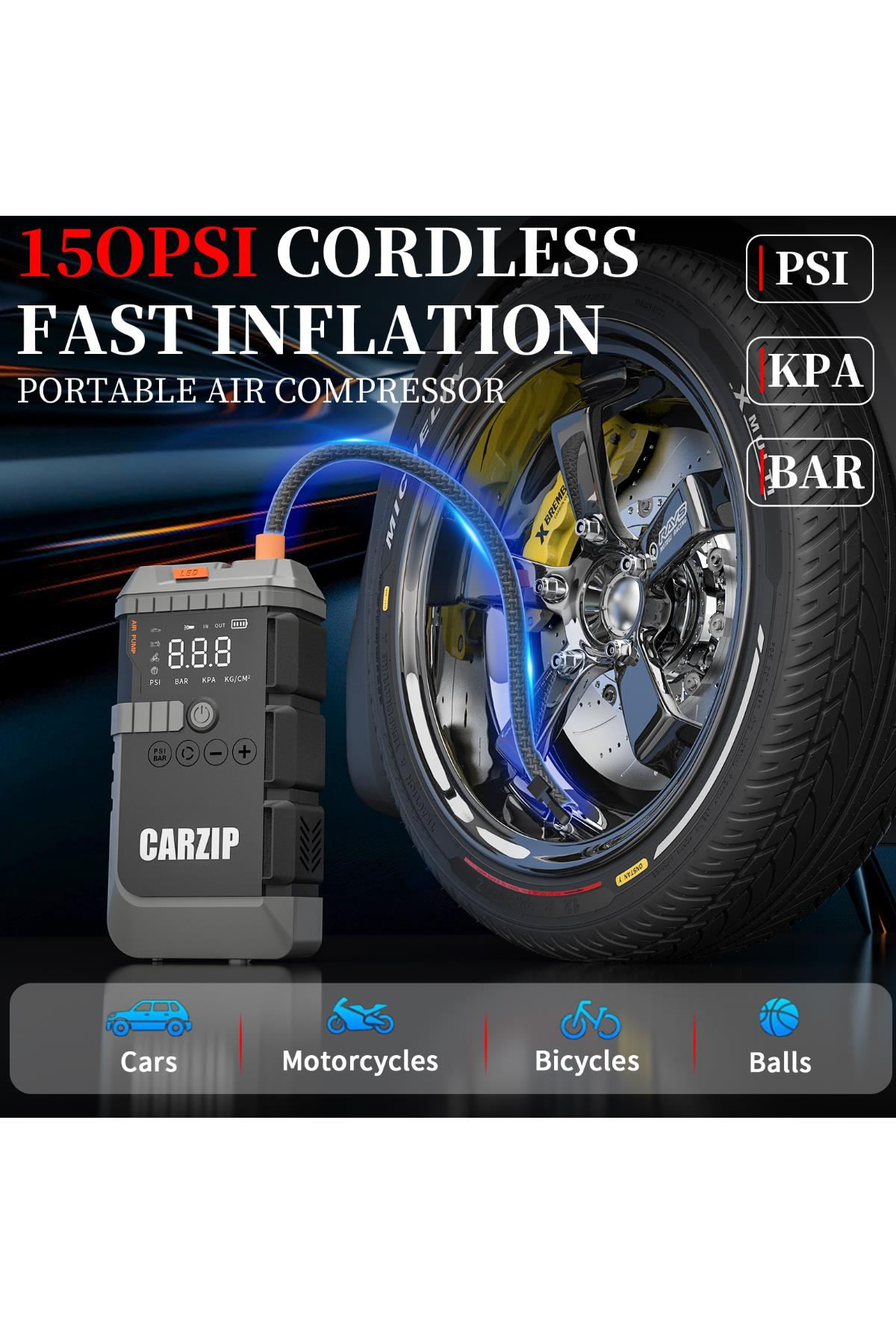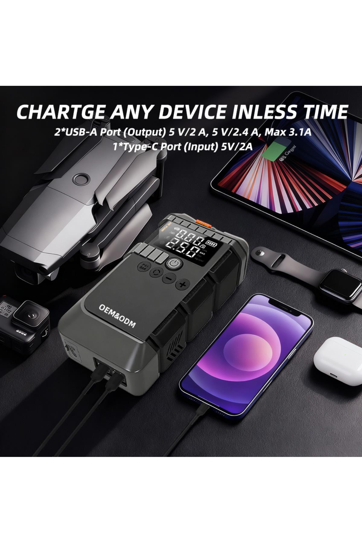 Akü Takviye Cihazı | 4'ü 1 Arada Powerbank, Hava Kompresörü, LCD Ekran, 12.000 mAh 150PSI