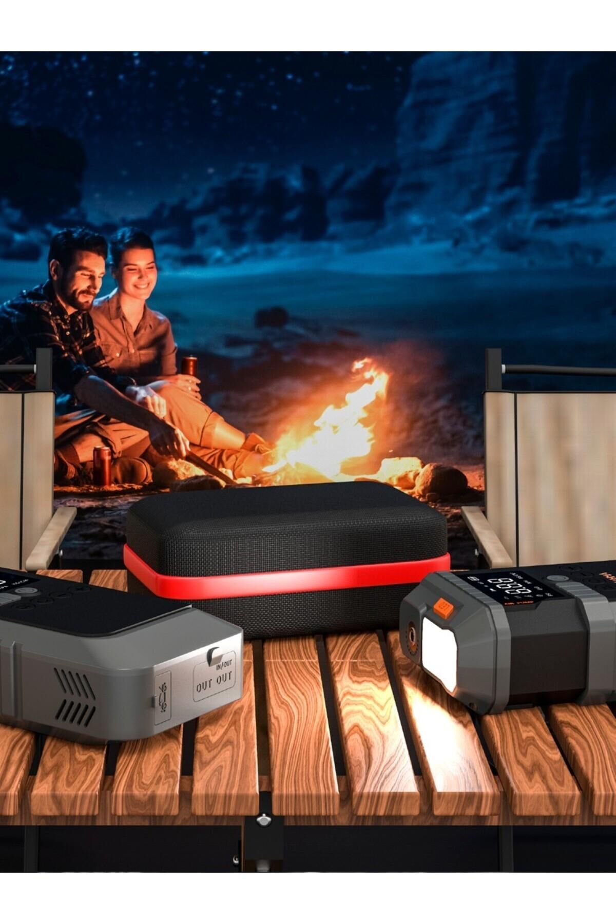 Akü Takviye Cihazı Lastik Hava Kompresörü Uyarı Işıklı ve Powerbanklı 19.800 mAh Şarjlı Taşınabilir