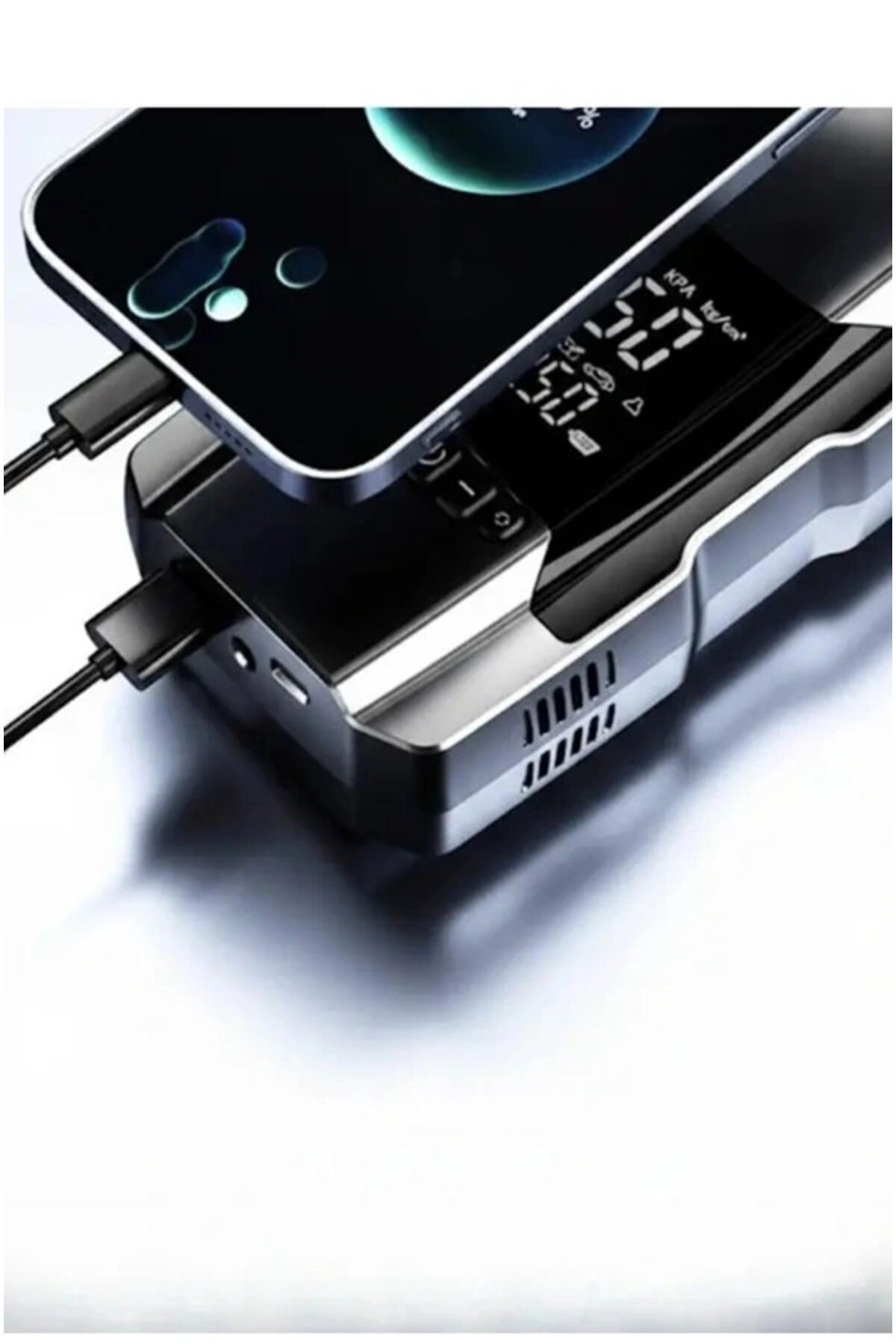Akım Korumalı Akü Takviye Cihazı | 4'ü 1 Arada Powerbank, Hava Kompresörü, LCD Ekran, 12.000 mAh 150PSI