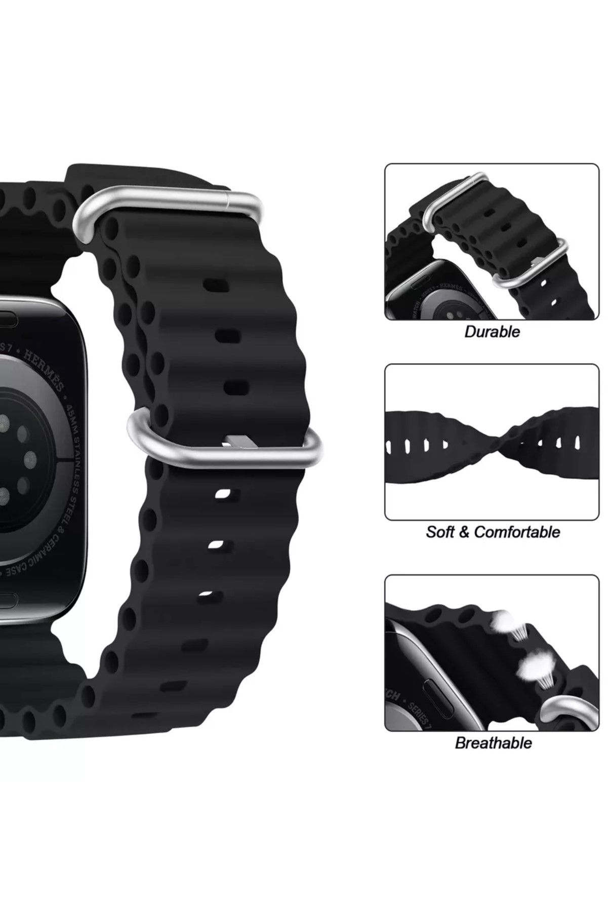 - PREPARE Apple Watch Uyumlu 45 46 49 mm A Kalite Ocean Kordon Kayış Silikon Bileklik