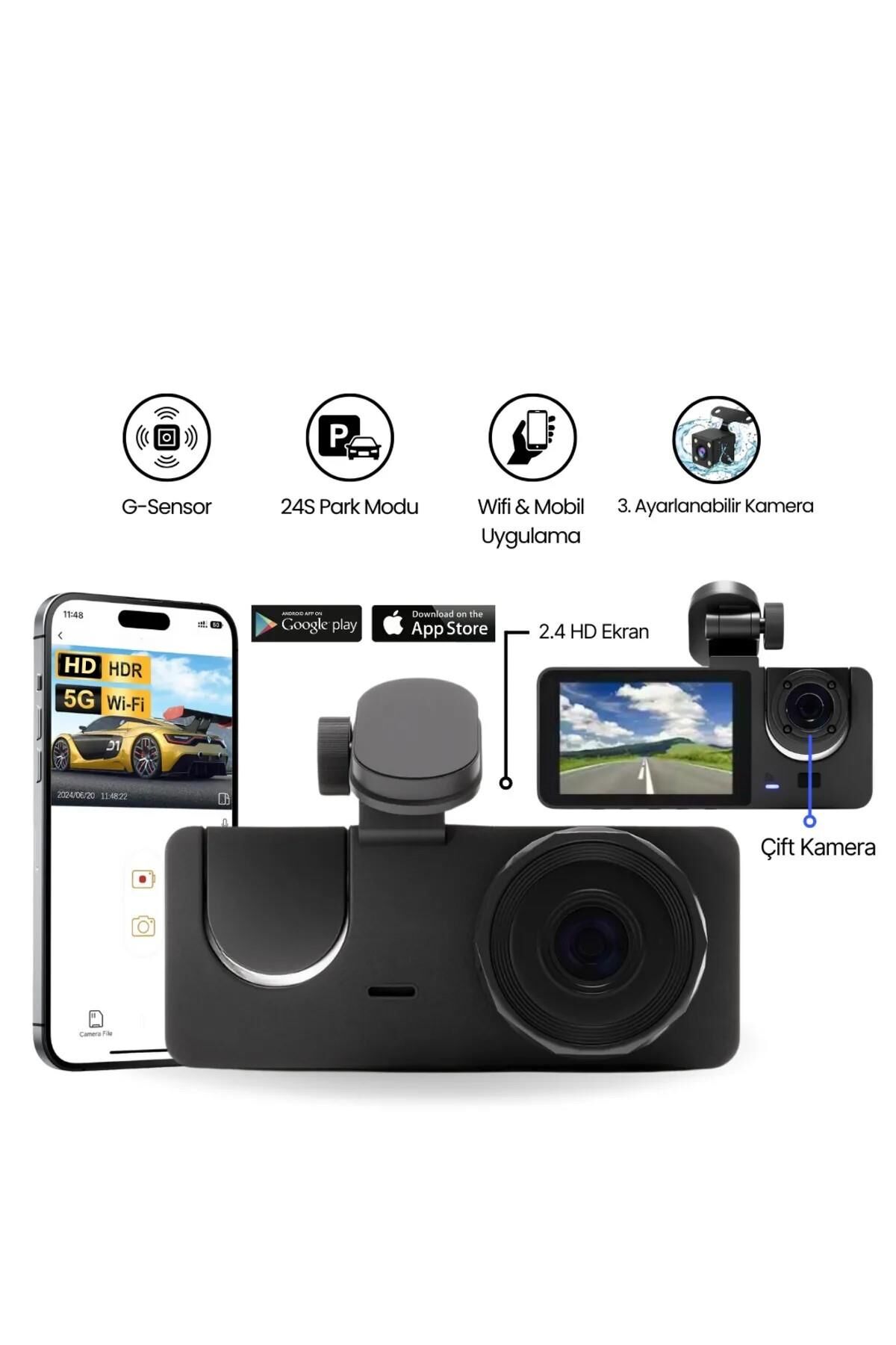 PREPARE Araç İçi Wi-fi Kamera HD 3 Kameralı 7/24 Kayıt G-sensör Mobil Uygulama İle Canlı Takip Black Box