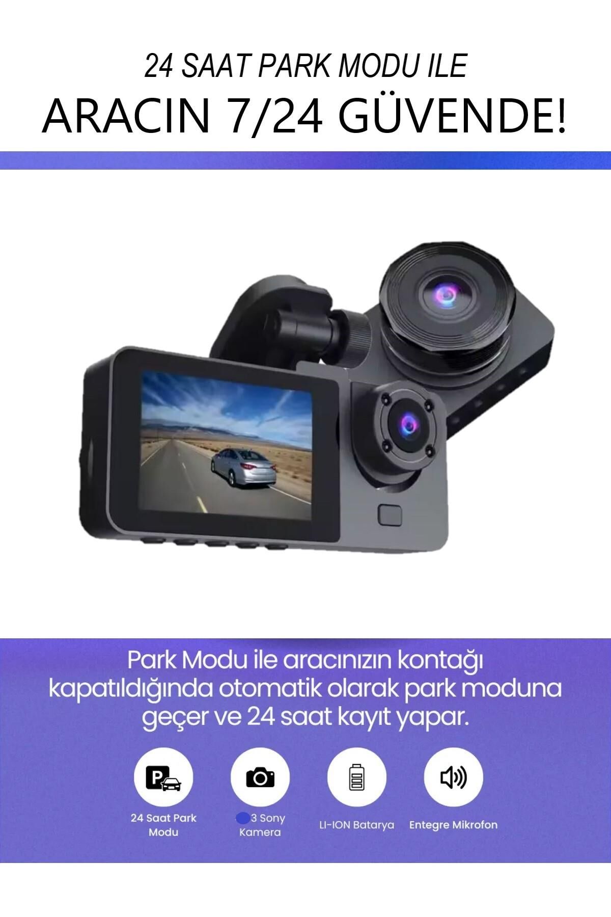 Aracınızı 3 gözle koruyun: Ön, iç ve ekstra arka kamera!