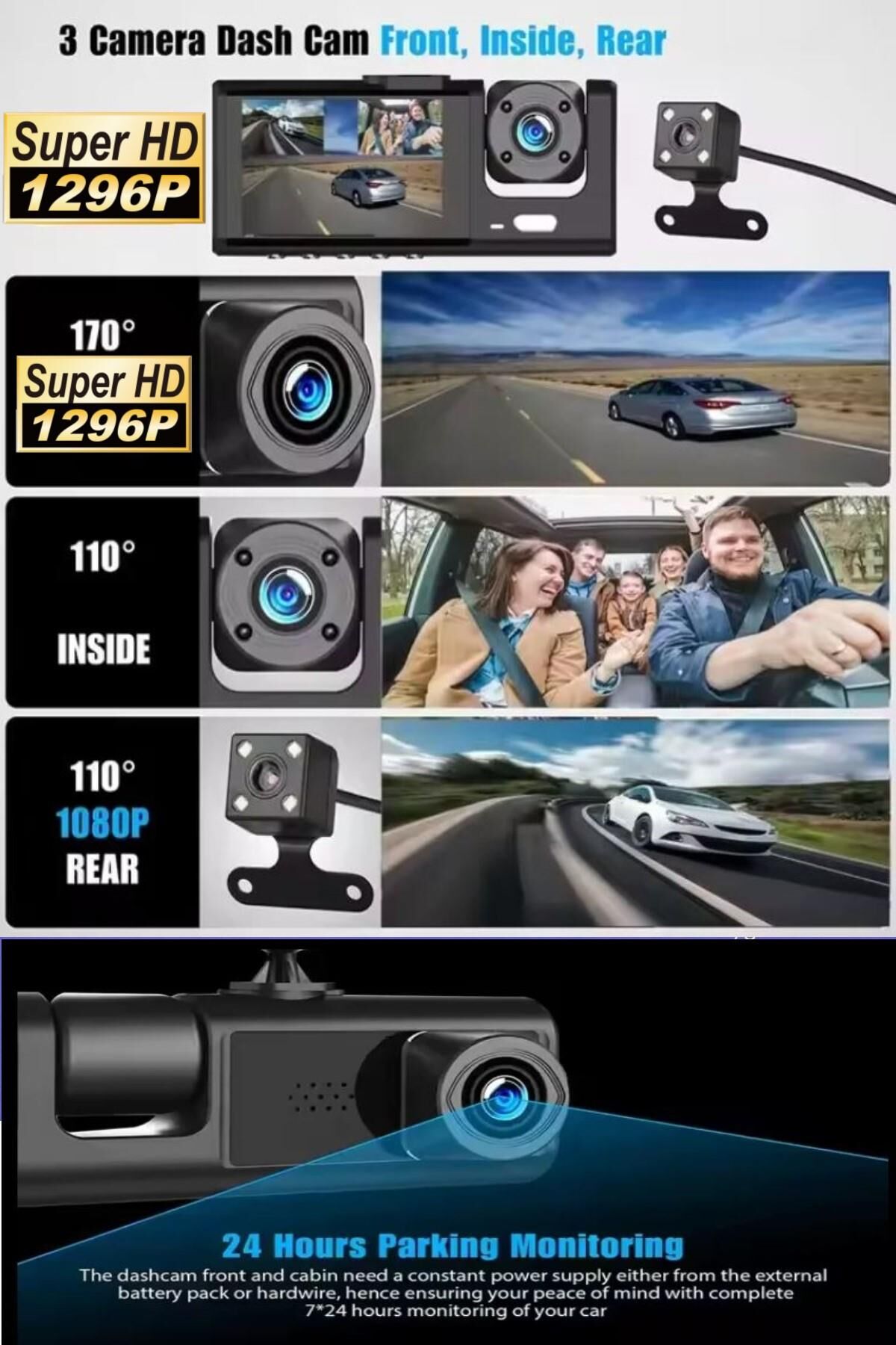 Aracınızı 3 gözle koruyun: Ön, iç ve ekstra arka kamera!