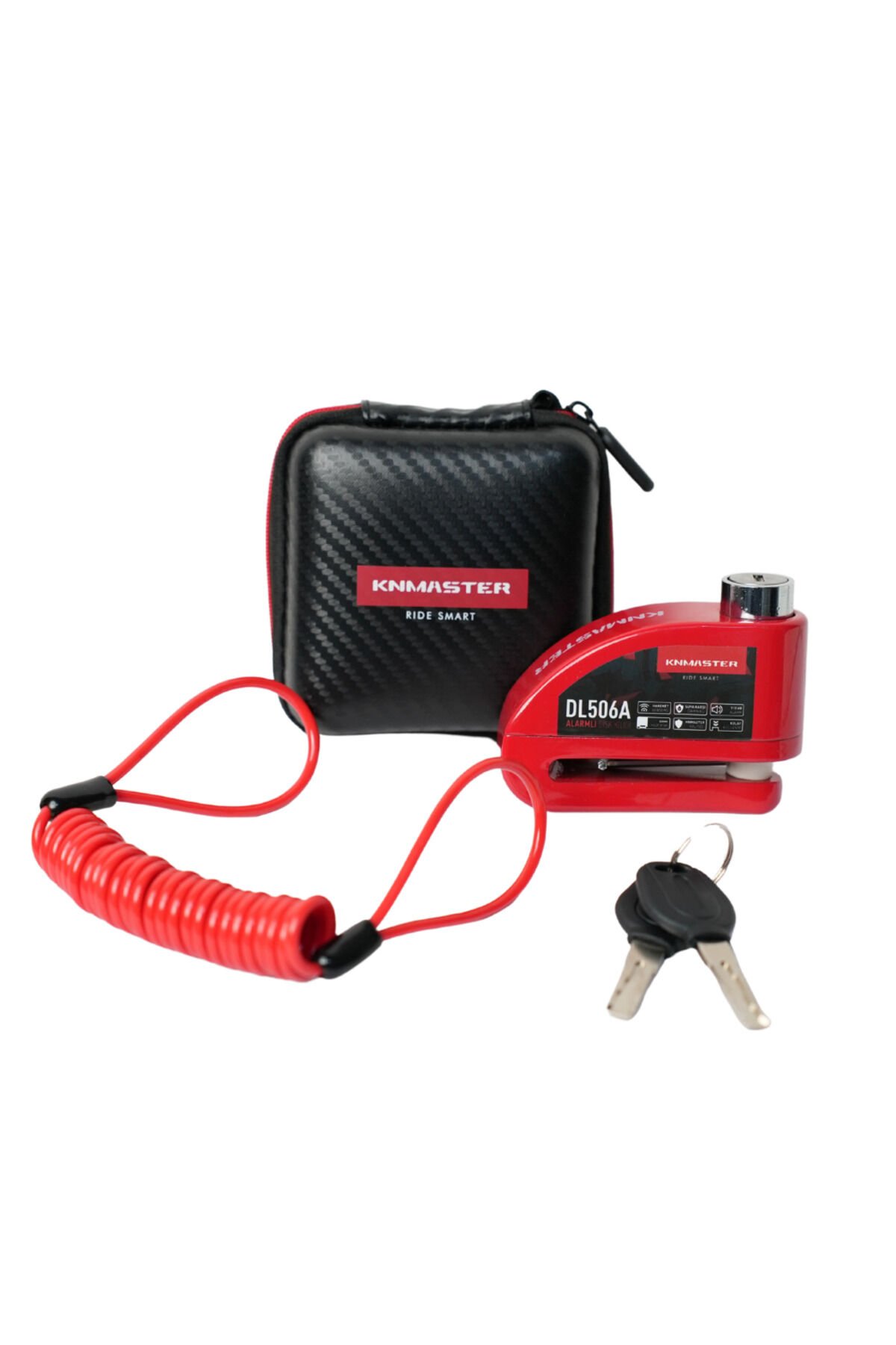 KNMASTER DL506A 6mm Alarmlı Disk Kilidi | Hatırlatma Kablosu ve Taşıma Çantası Hediye | Kırmızı