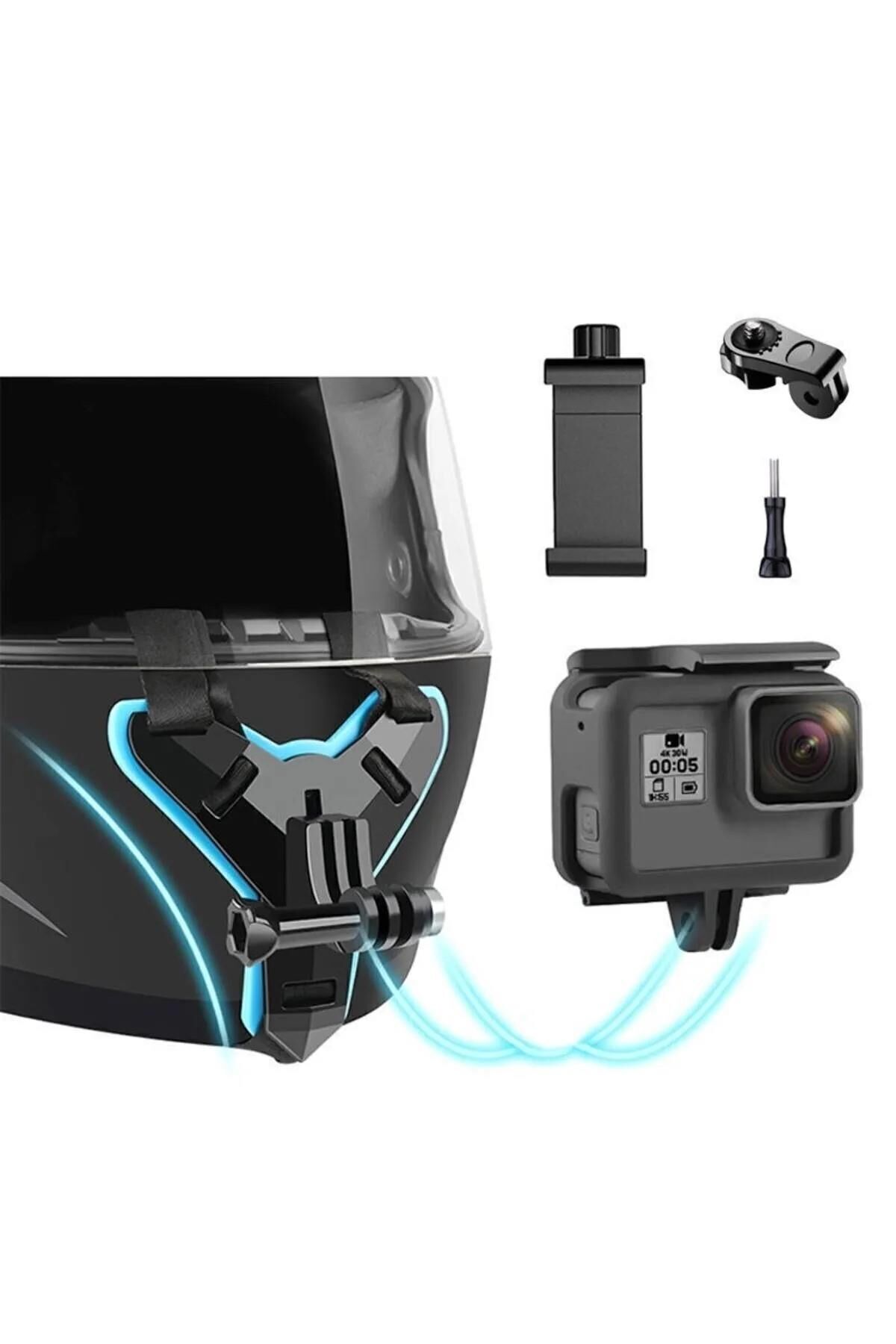 PREPARE Kask için Alt Çene Bağlantı Aparatı Aksiyon Kamera ve Telefon Tutucu Set Motosiklet Kask Teçhizat Tutucu