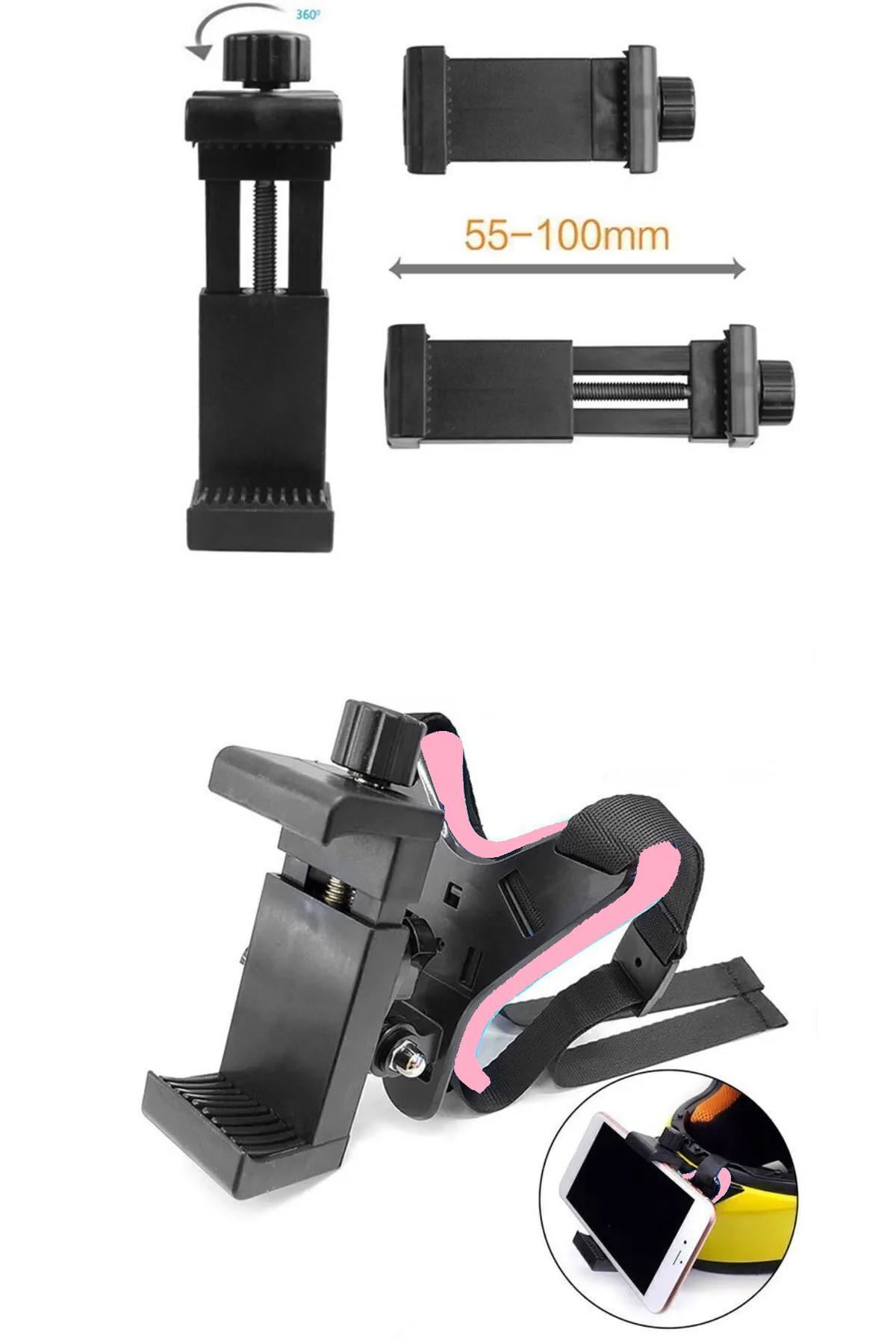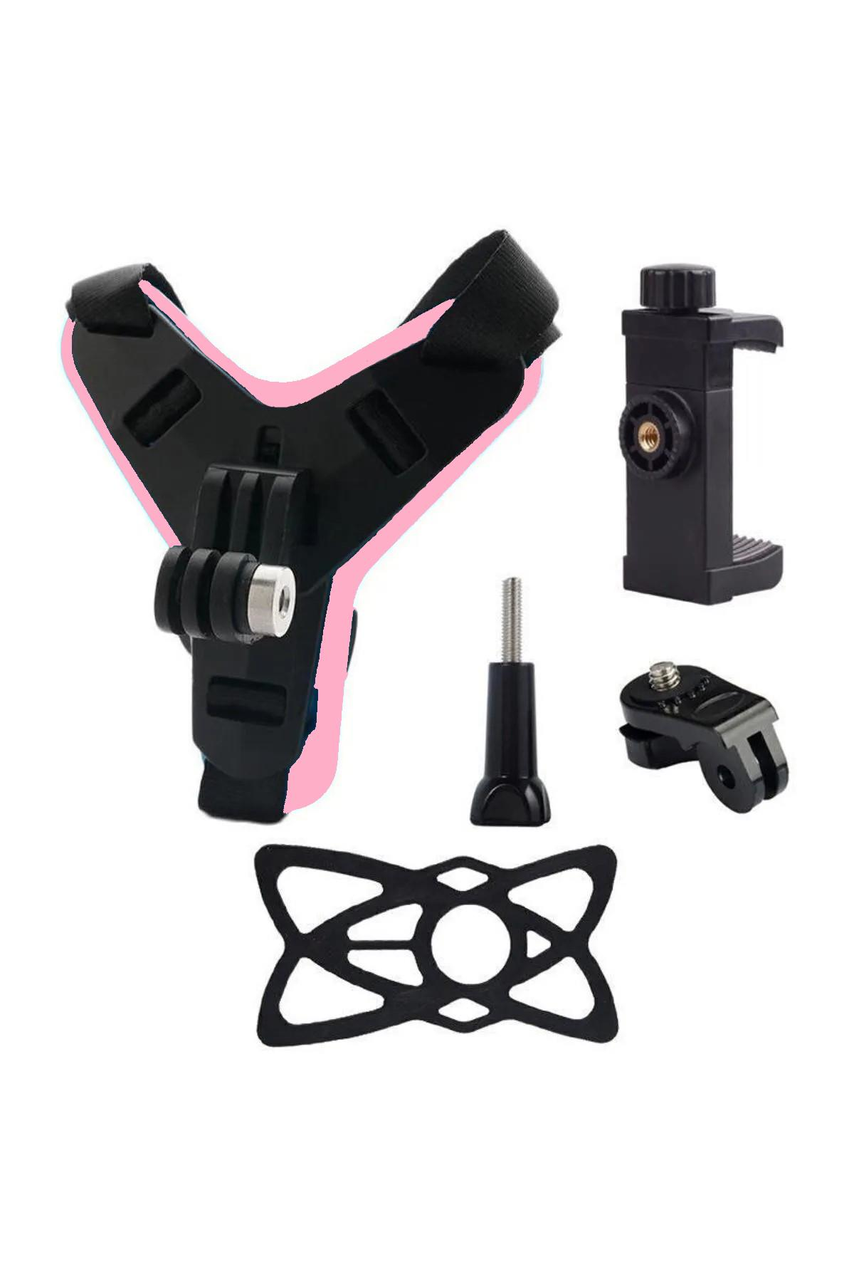 Kask için Alt Çene Bağlantı Aparatı Aksiyon Kamera ve Telefon Tutucu Set Motosiklet Pembeli Teçhizat