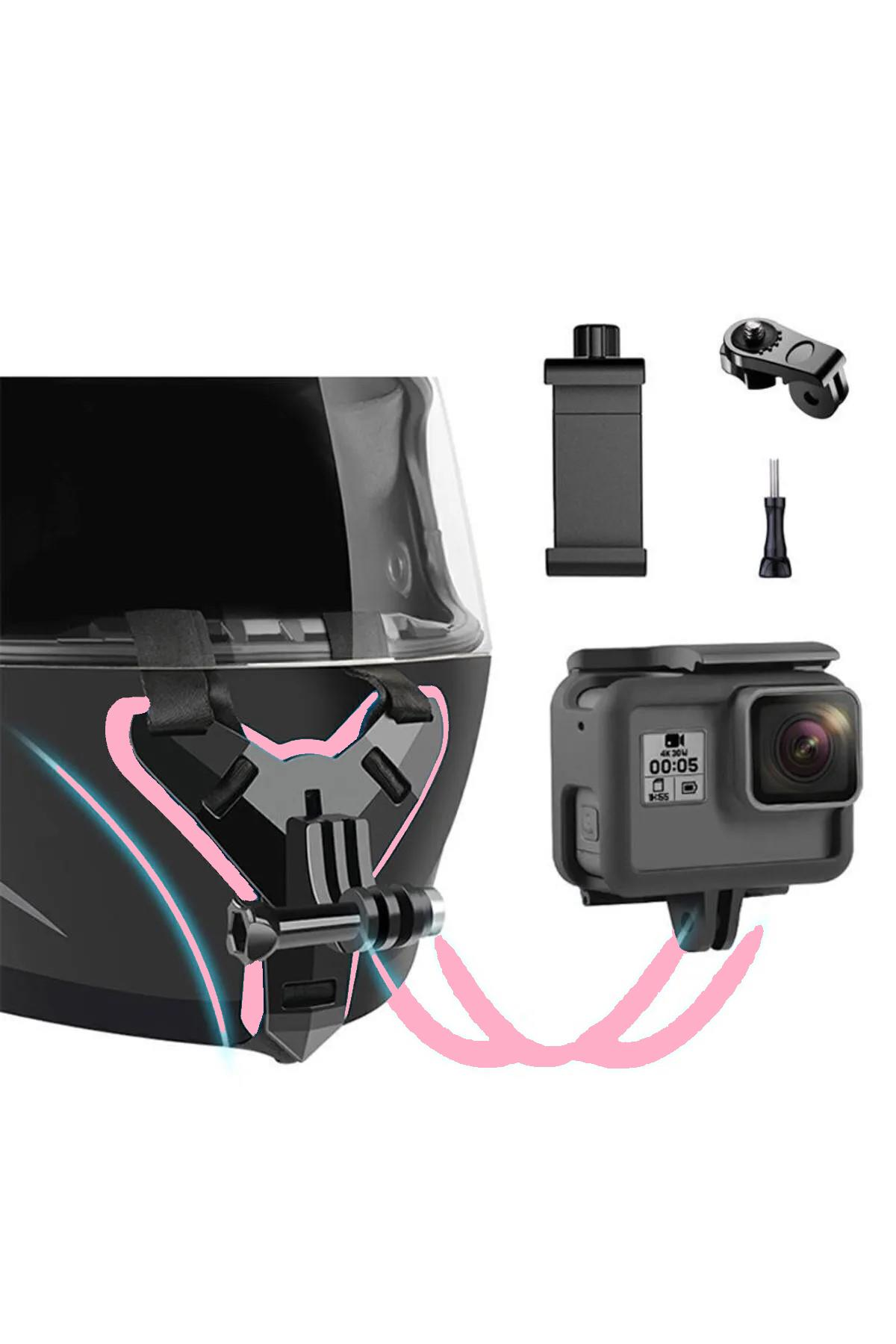PREPARE Kask için Alt Çene Bağlantı Aparatı Aksiyon Kamera ve Telefon Tutucu Set Motosiklet Kask Teçhizat Tutucu