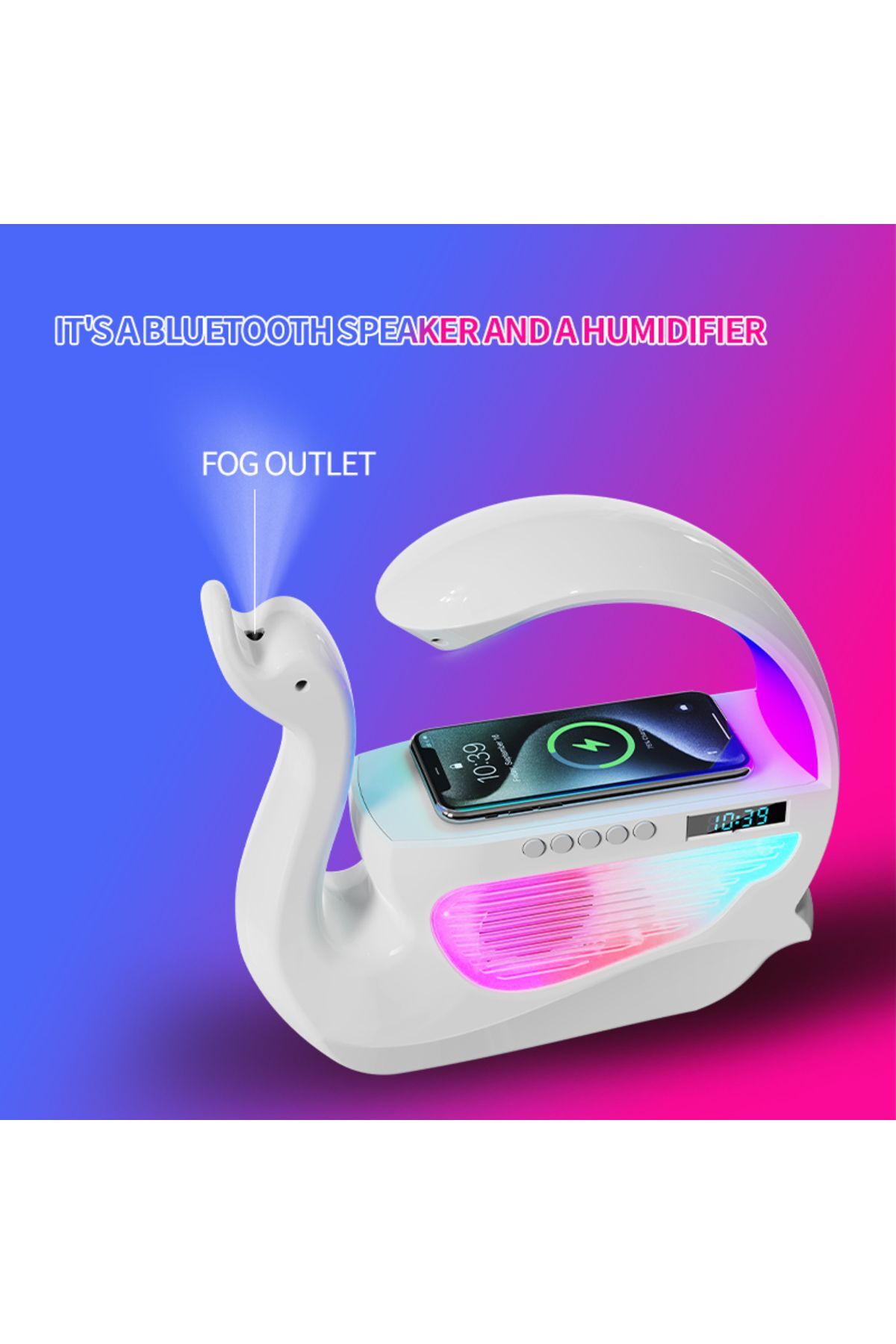 Kuğu Nemlendirici 6'sı 1 Arada RGB Işık Kablosuz Şarj Bluetooth Hoparlör