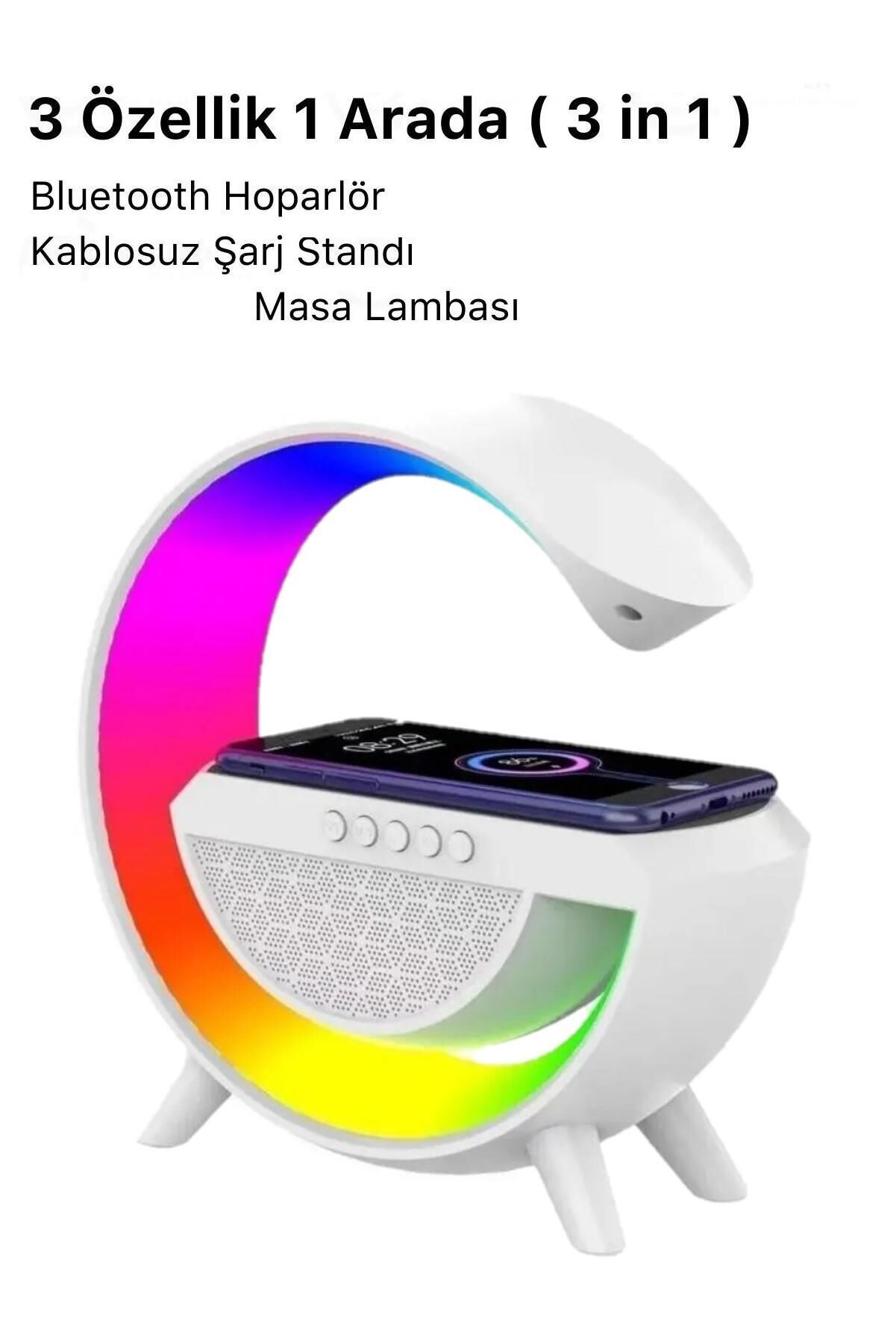 Led Işıklı Bluetooth Hoparlör Kablosuz Şarj Müzik Çalar Telefon Standı 3in1 Speaker