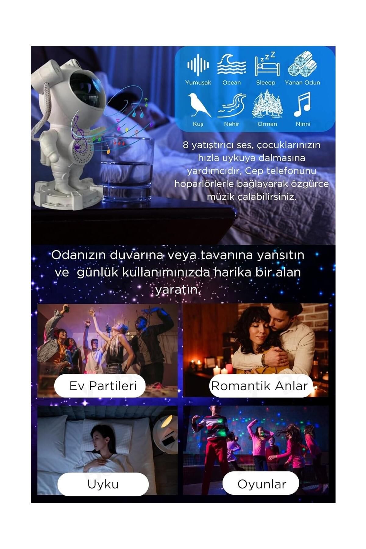 - PREPARE Astronot Galaksi Işık Projektörü Led Işıklı Gece Lambalı Yıldızlı Bluetooth Hoparlör Müzik Çalar Speaker