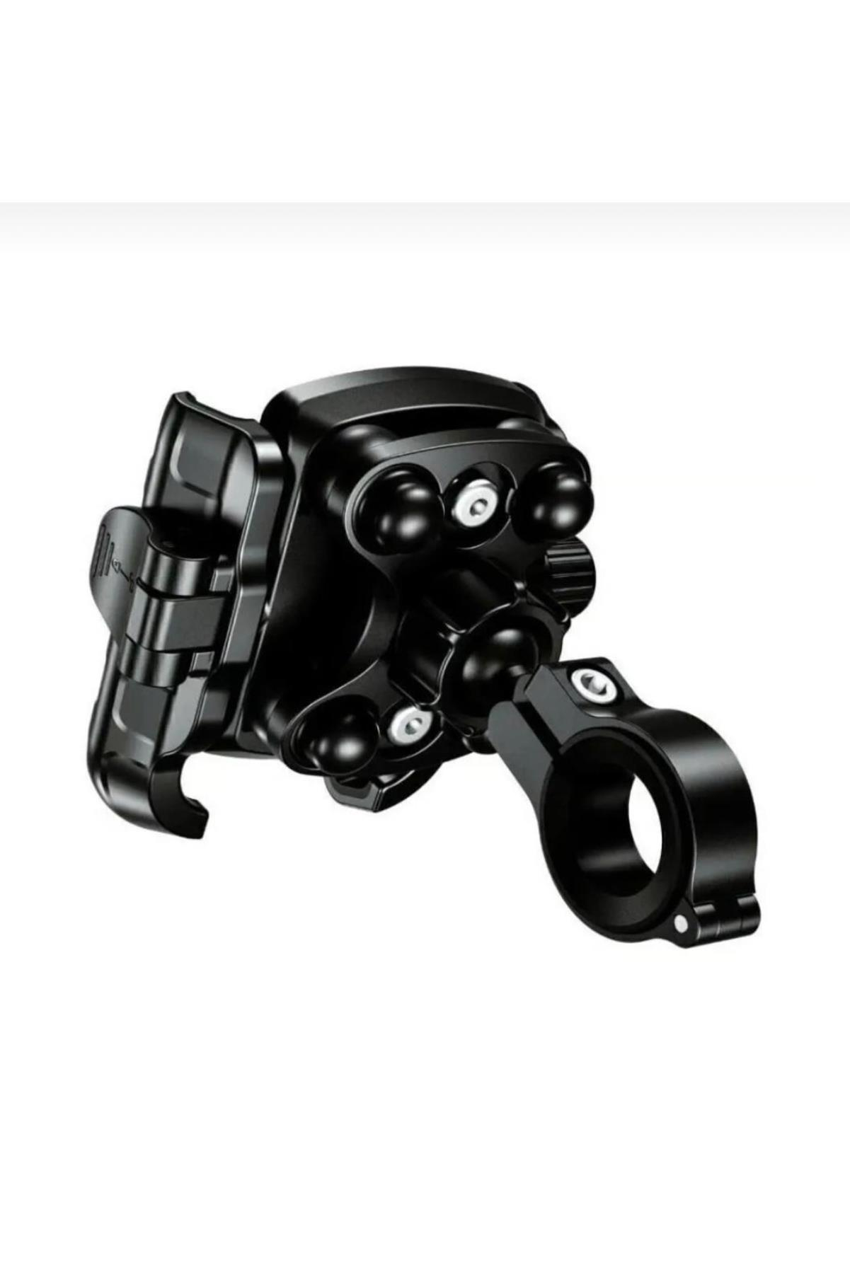 Motosiklet Profesyonel Telefon Tutucu Ayna ve Gidon Uyumlu Sıkmalı ve Mandallı 360 Derece Metal