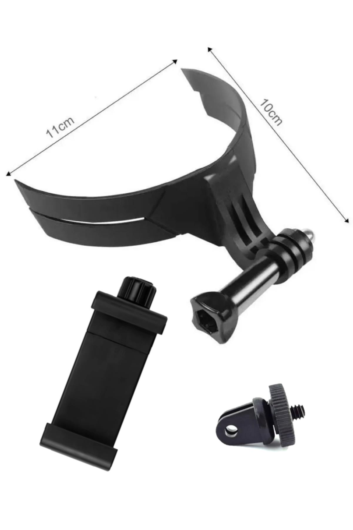 Motosiklet Kask Çene Yapıştırıcılı Telefon Tutucu Aparatlı Lastikli Set ve Aksiyon Kamera Tutucu