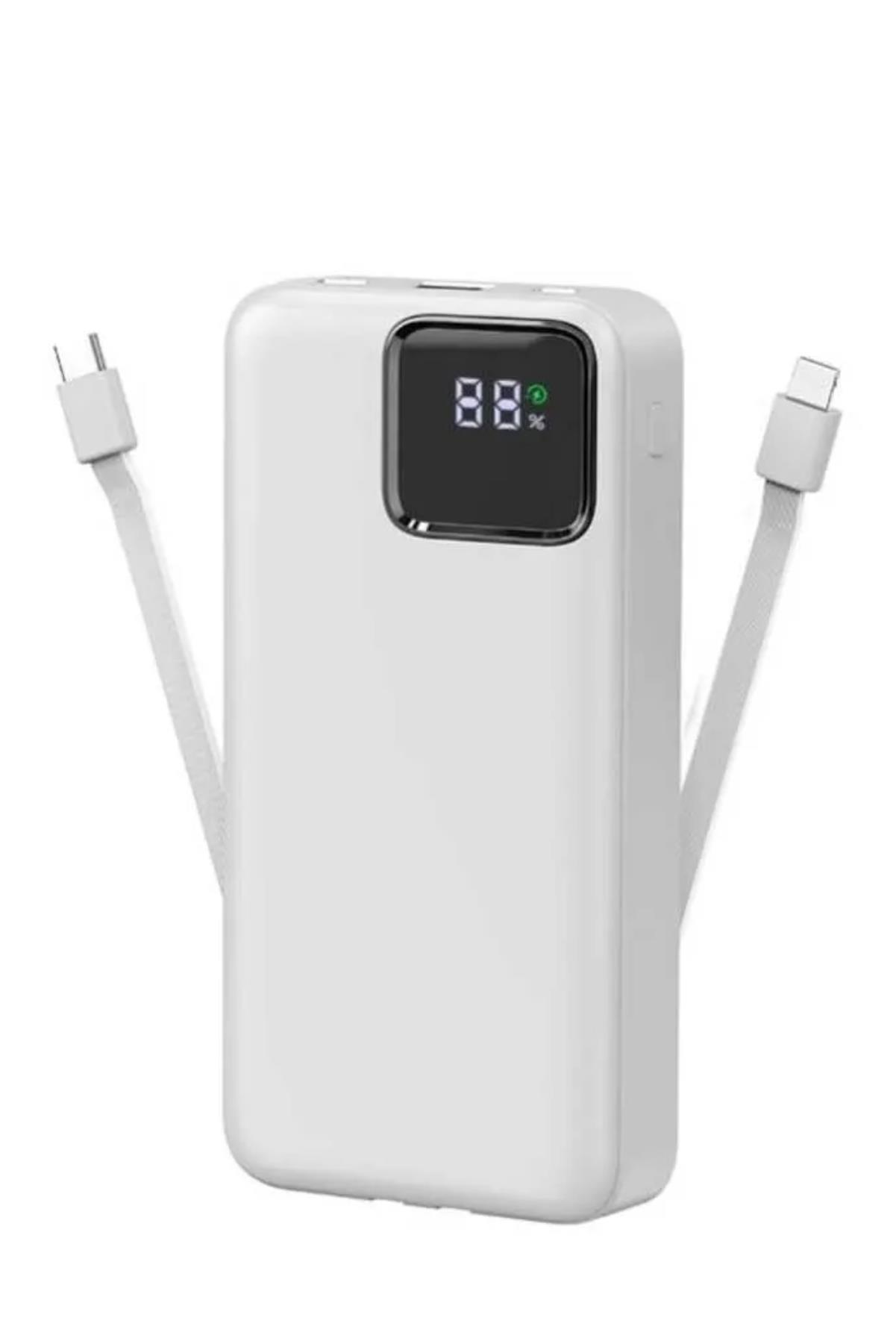 Powerbank 20.000 mAh 2.1A Dahili Kablolu Dijital Göstergeli Type-C Usb-A Micro Usb Powerbank