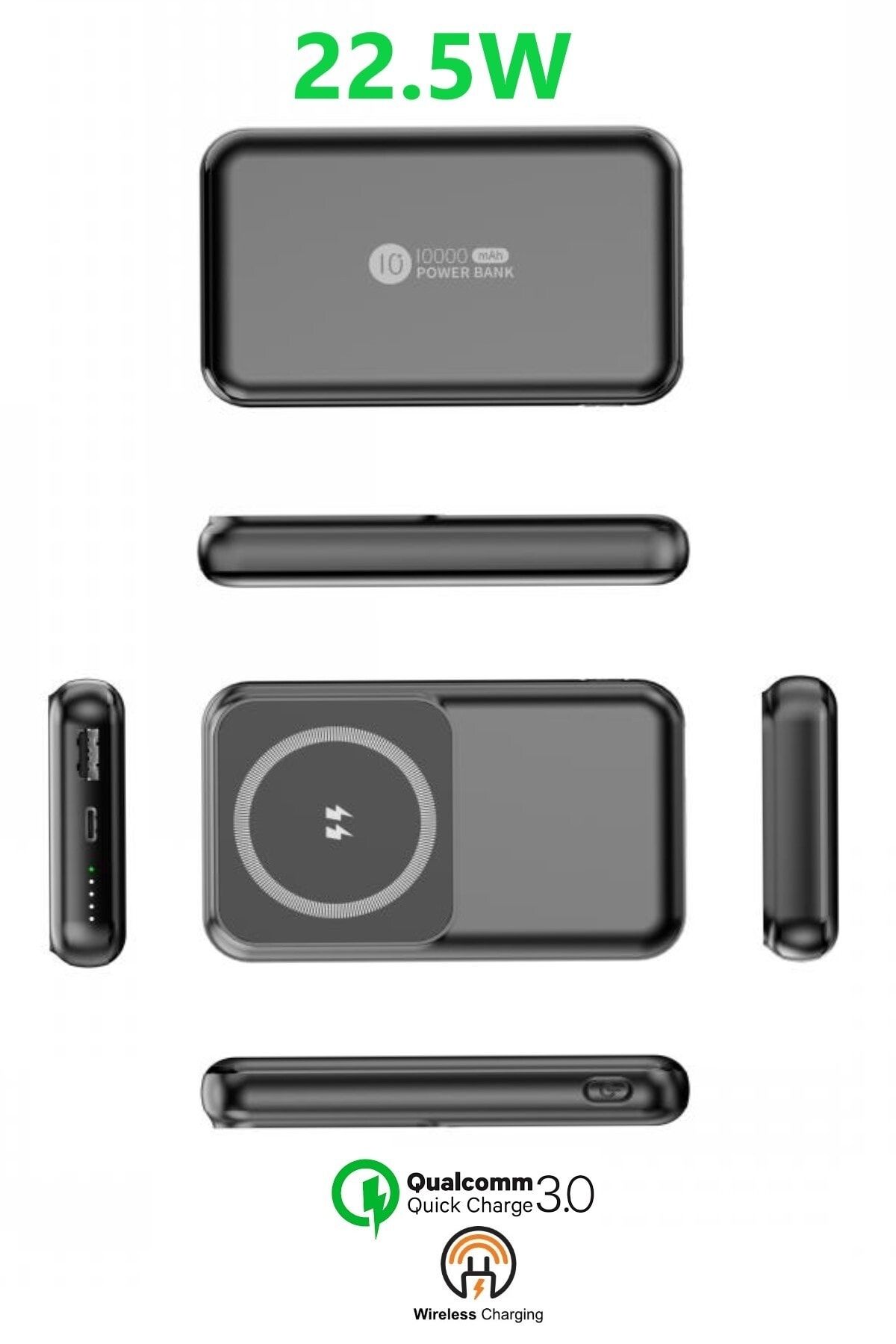 10000 mAh Kablosuz Mıknatıslı Magsafe Özellikli Fast Powerbank 22.5W PD 3.0 Süper Hızlı Şarj