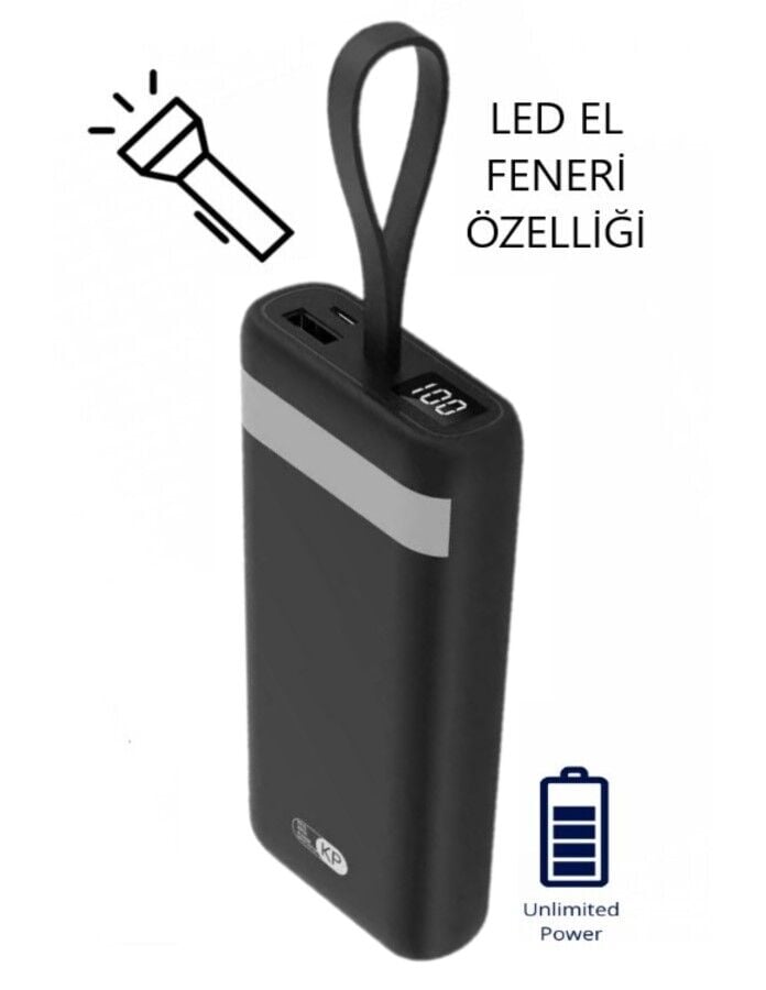 20,000 mAh Powerbank LED EL Feneri Özellikli Kablolu Taşınabilir Şarj Cihazı