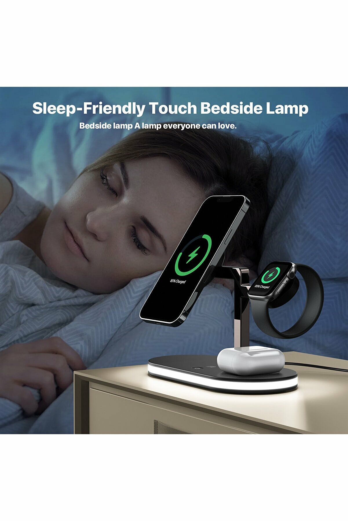 PREPARE Magsafe Hızlı Şarj İstasyonu 5 in 1 Kablosuz + 1 USB Iphone Airpods Watch Uyumlu 15W + Gece Lambalı