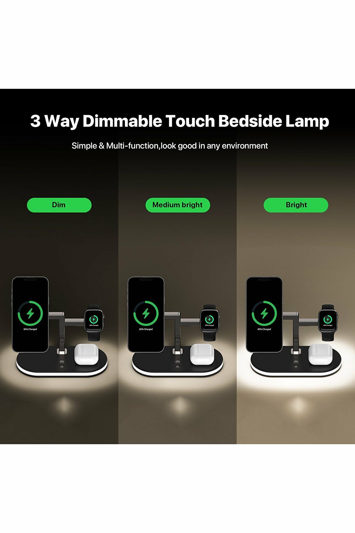 Magsafe Hızlı Şarj İstasyonu 5 in 1 Kablosuz + 1 USB Iphone Airpods Watch Uyumlu 15W + Gece Lambalı