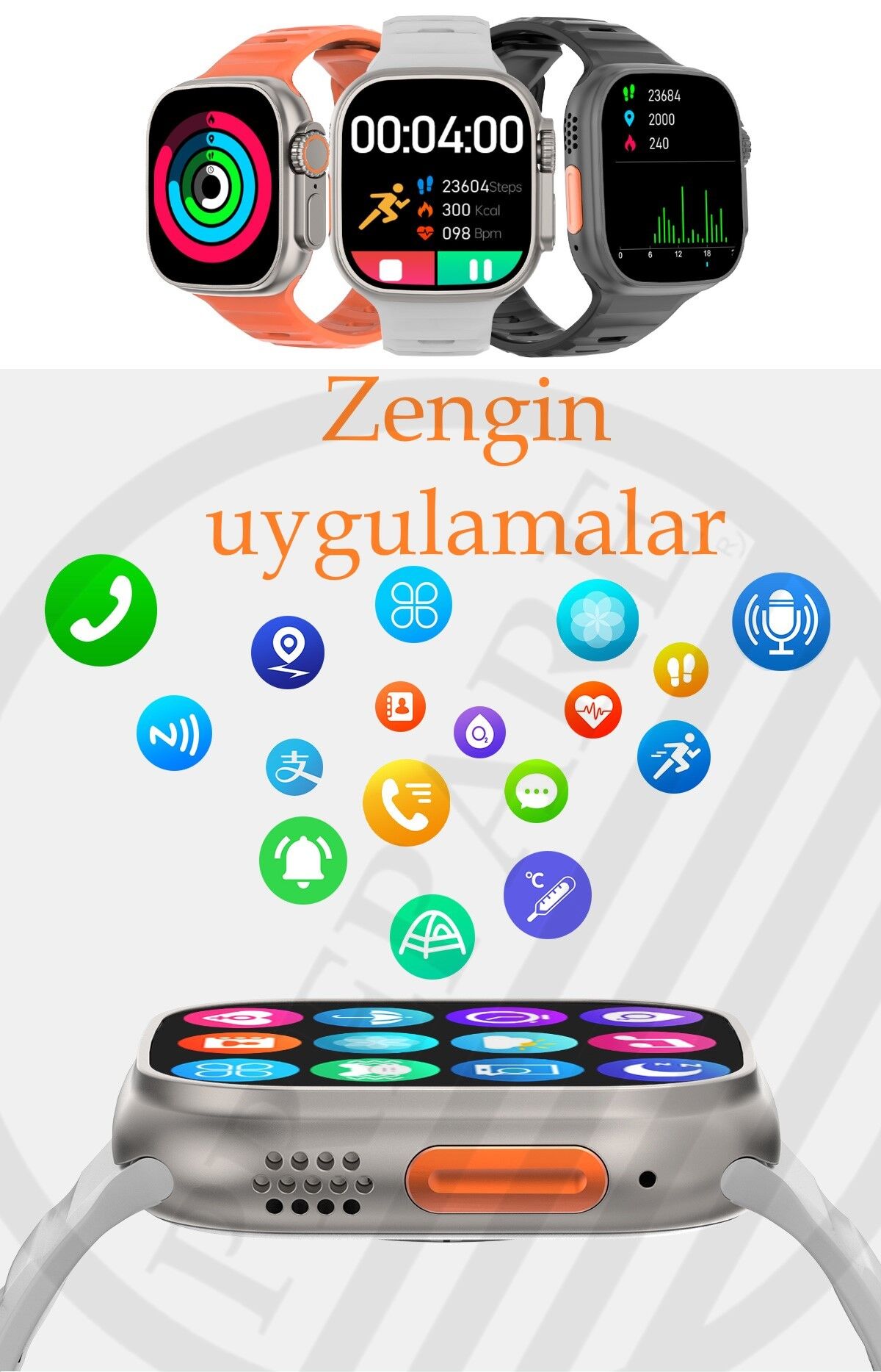 PREPARE Watch 8 Ultra Plus Pro 49mm 2,02inç Çift Kordon Nfc Konuşma Özellikli Ios Android Uyumlu Akıllı Saat
