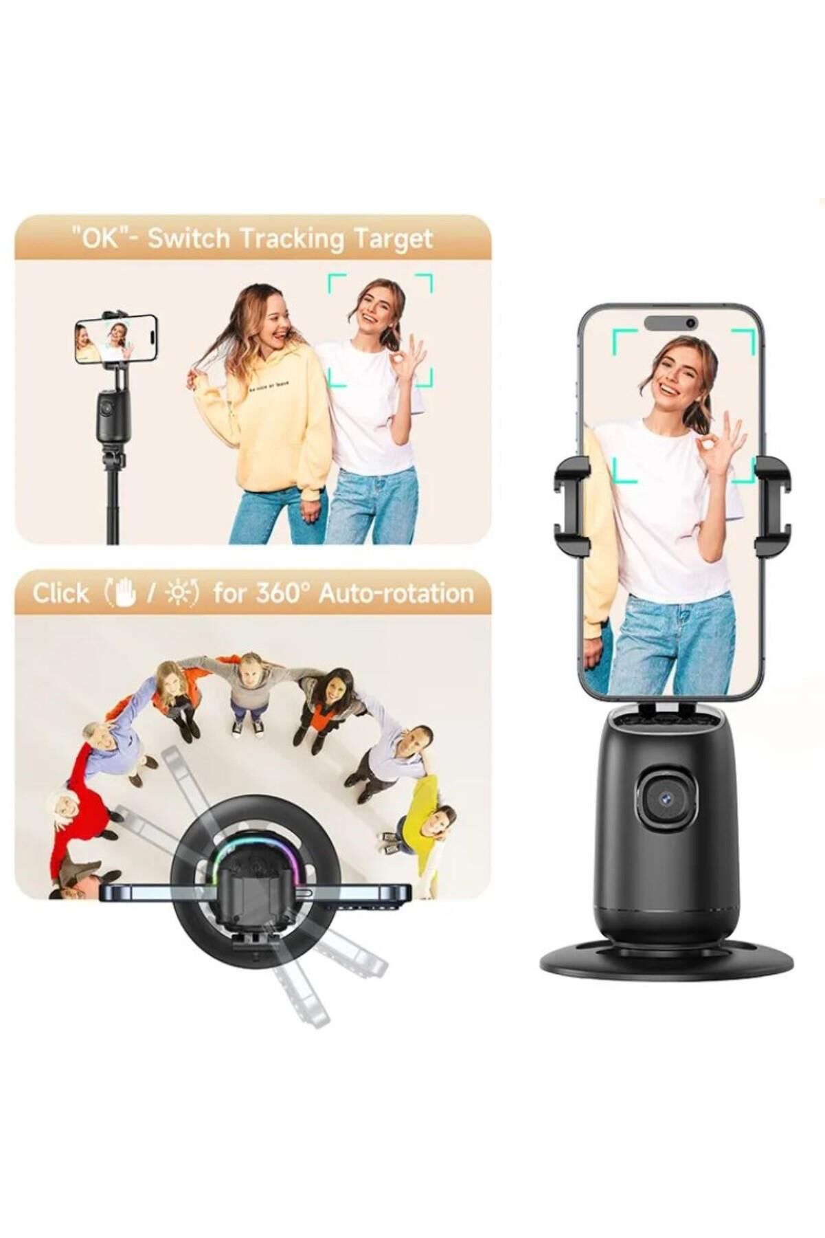 Dahili kamerasıyla bu yüz izleme telefon tutucusu, herhangi bir ek uygulamaya ihtiyaç duymadan sizi akıllıca takip edebilir.Canlı yayın platformları gibi tüm video uygulamalarıyla ve fotoğraf ve video çekimiyle uyumludur.