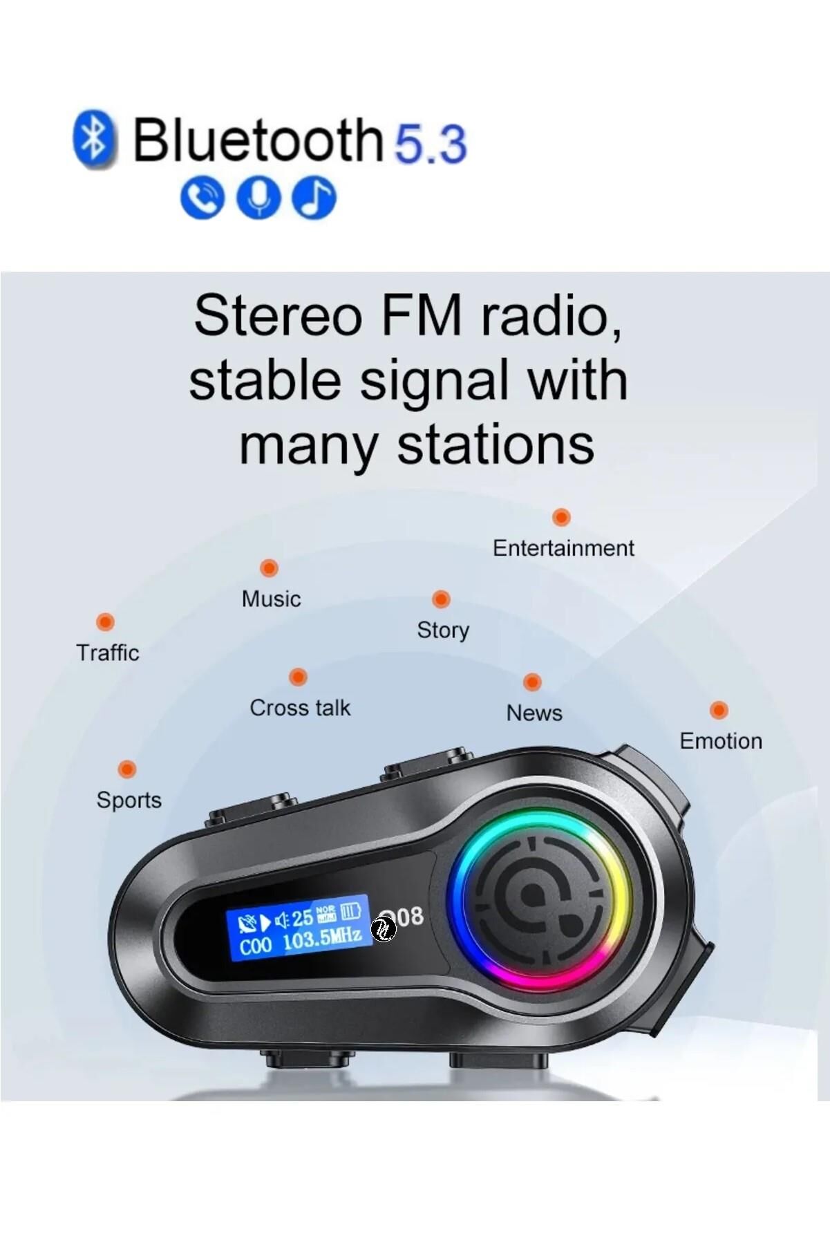 Clear LCD ekran, cihazın görüntülenmesini ve kullanılmasını kolaylaştırır Stereo FM radyo, birçok istasyon ile istikrarlı sinyal IPX6 toz geçirmez ve sıçramaya dayanıklı Yeni yükseltme 5.3 çip, daha hızlı tepki, daha kararlı Yüksek sadakat sesi Çoklu gürültü azaltma çözümleri Aynı anda iki mobilephonesat bağlayın Not: Bu ürünün interkom işlevi yoktur.
