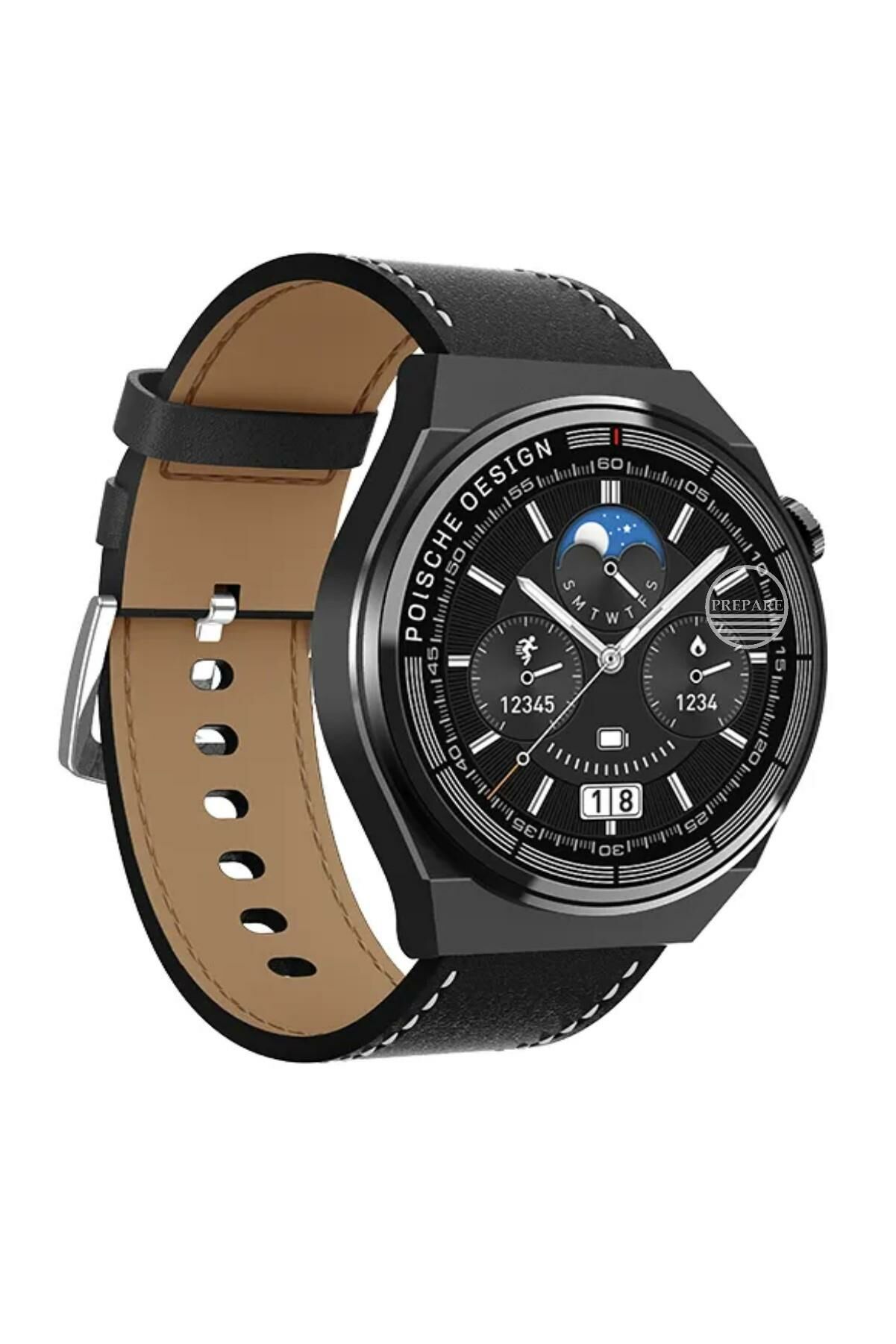 PREPARE Smart Watch 3GT MAX 1.45 inç Poische Design Siri Nfc Bluetooth Antrasit Siyah Akıllı Saat 3 Kordonlu