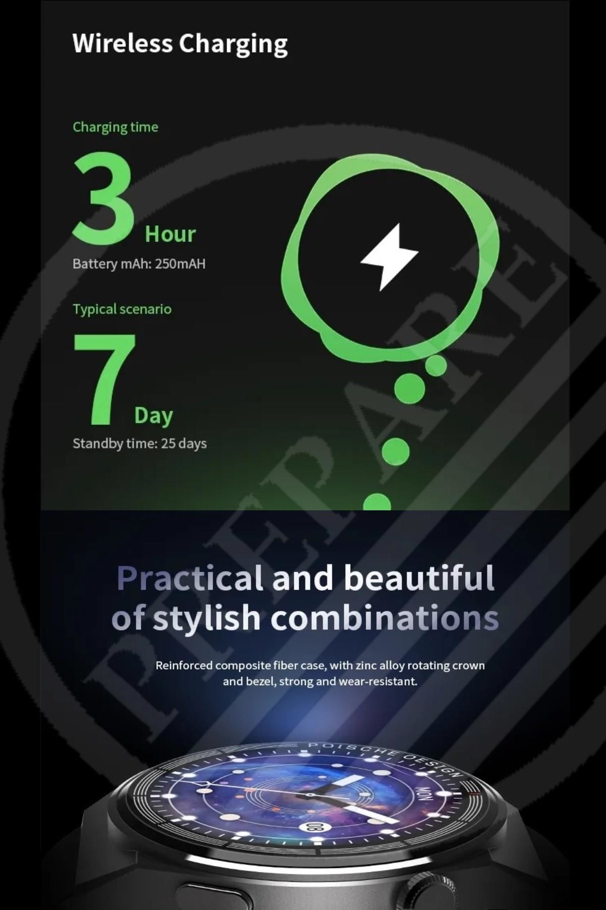 PREPARE Smart Watch 3GT MAX 1.45 inç Poische Design Siri Nfc Bluetooth Antrasit Siyah Akıllı Saat 3x Kordon