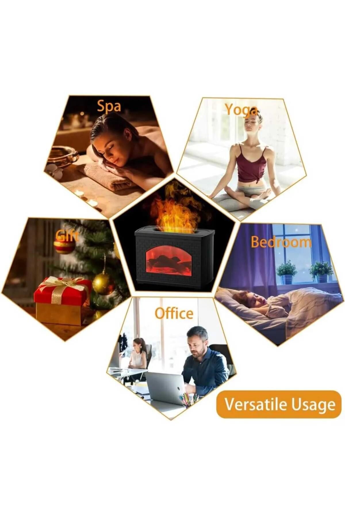 - Gerçekçi Alev Tasarımı: Gerçekçi alev tasarımına sahip olan bu aroma difüzörü, uzun bir günün ardından dinlenmek ve rahatlamak için ideal bir seçenek sunar. Evde, yatak odasında, ofiste veya yoga sırasında kullanabileceğiniz bu cihaz, bulunduğunuz ortama sakinleştirici bir atmosfer katarak stresinizi azaltmanıza yardımcı olur. Alevlerin gerçekçi görünümü, ortamınıza sıcaklık ve huzur getirirken, aynı zamanda ruh halinizi de iyileştirir. Günün yorgunluğunu atmak için mükemmel bir yardımcıdır.