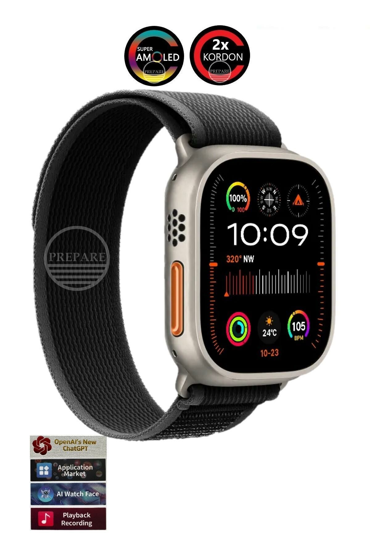 RREPARE Ultra 2 Multi 9 Pro Smart Watch Titanyum Vidalı Gri Kasa Zeytin Kordon Pusulalı 49mm Kilitli Akıllı Saat