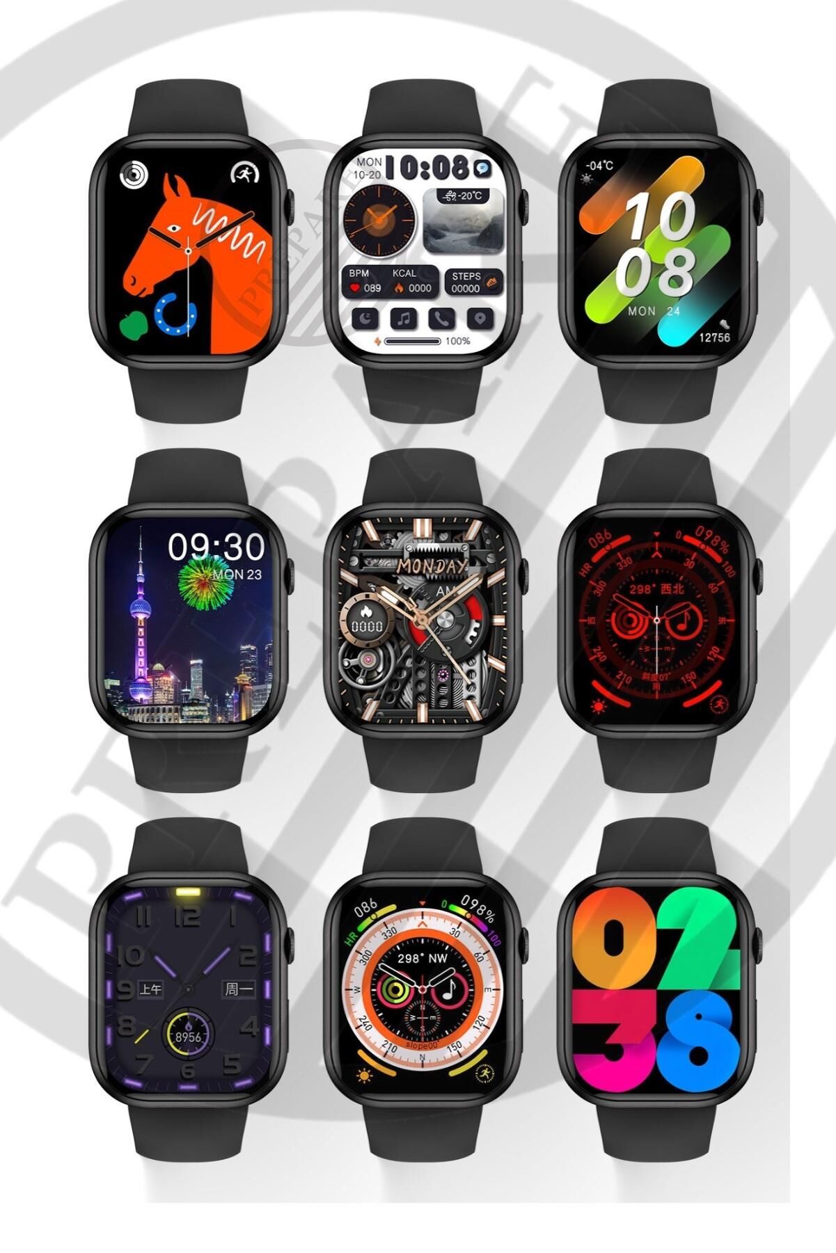 Watch 8 PR-9 Pro Amoled 45mm 1,9 inç Ekran Pusulalı Vidalı Kilitli 2 Kordon Akıllı Saat
