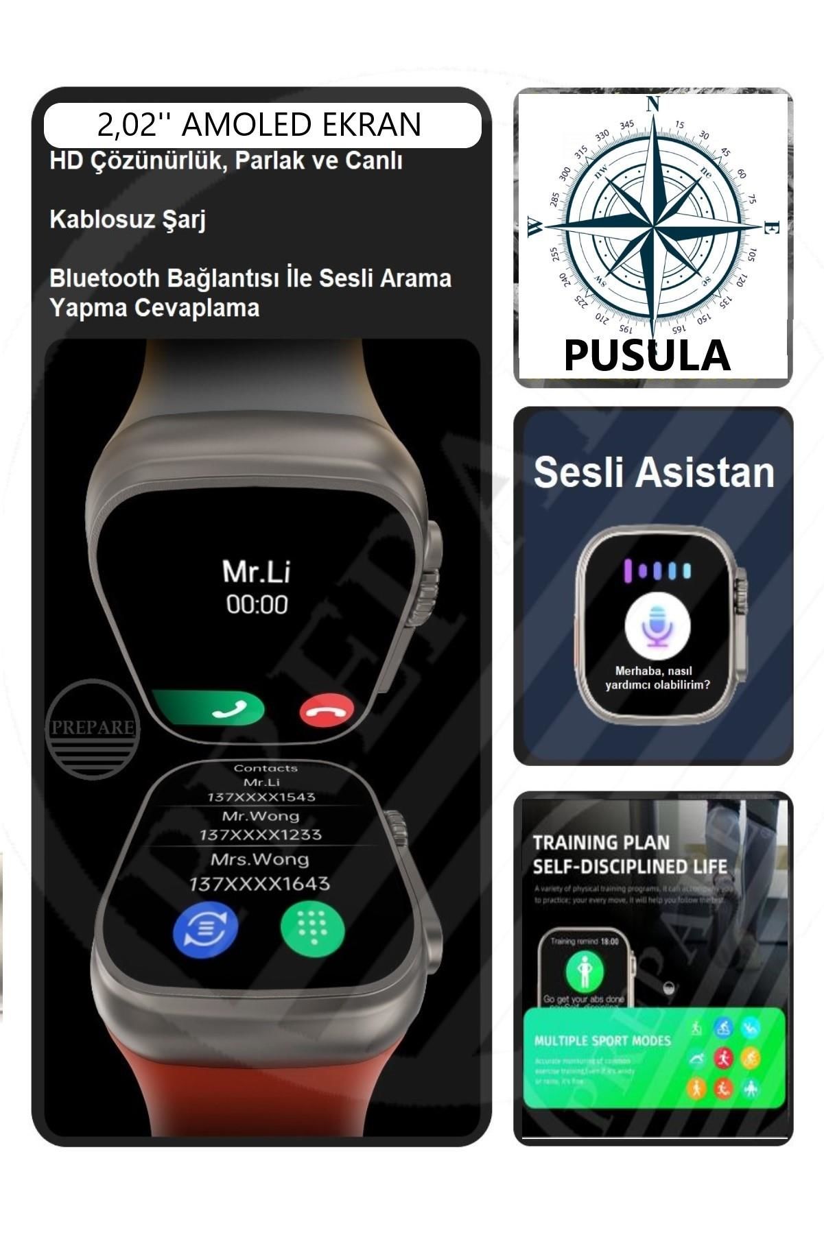 PREPARE Watch 8 Ultra Pro Max Amoled 49mm 2,02 inç Ekran Pusula Vidalı Kilitli Çift Kordon Akıllı Saat